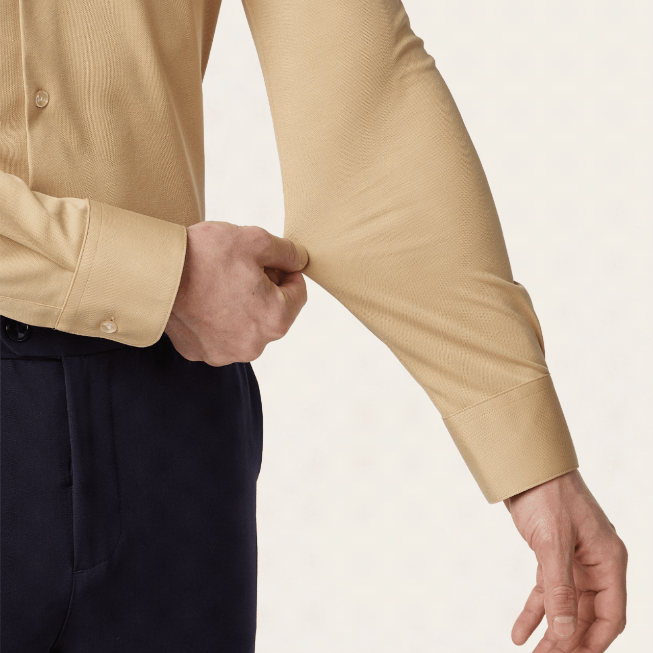 Disclaimer: Comfort staat voorop, daarom zijn onze producten niet 100% hydrofoob. Ze blokkeren een gematigde hoeveelheid zweet. 100% hydrofobe stoffen zouden voelen als een regenjas in plaats van een comfortabel shirt. Wij beloven dat onze kleding transpiratie beter blokkeert dan niet-technische kleding en je zweet sneller laat opdrogen. Witte stoffen zijn transparanter en minder goed in het verbergen van zweetvlekken. Is het verbergen van vlekken jouw belangrijkste doel? Kies voor een donkerdere kleur en combineer met een ondershirt.
