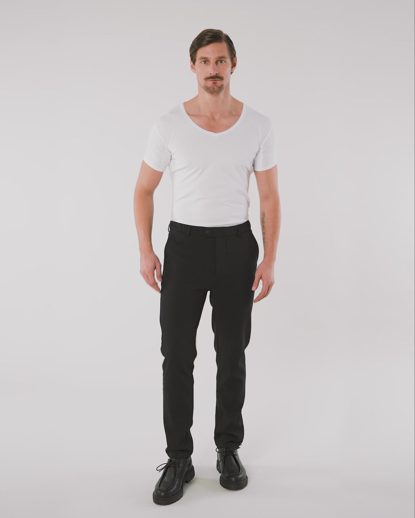 The undershirt is invisible when wearing under a shirt thanks to the wide v-neck.